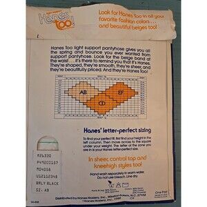 Hanes Too Light Support Pantyhose Sz AB Style 157 Barely Black Vtg 1986 New