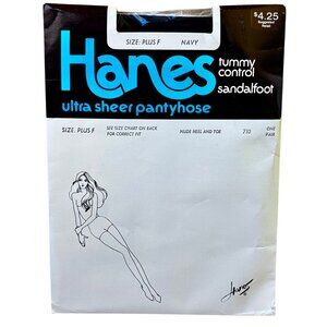 Hanes Vintage Pantyhose Ultra Sheer NAVY Tummy Control + Sheer to Waist Plus F