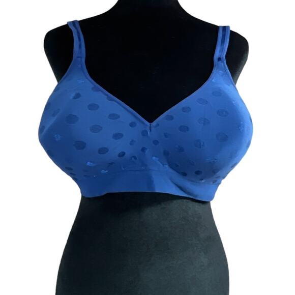 Women's padded wire free t-shirt bra from Hanes in blue with polka dots. SIZE 3XL. Due to light & screen variations, colors may vary slightly from the images