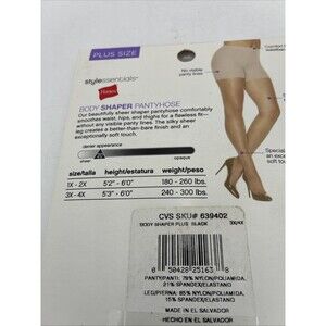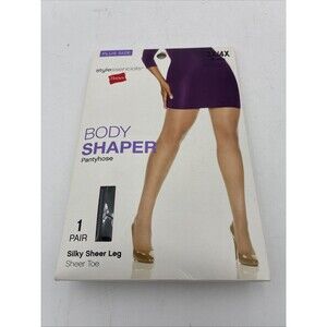 Hanes Women's 3X-4X Body Shaper Plus Size Pantyhose BLACK Silky Sheer Leg 2 Pack