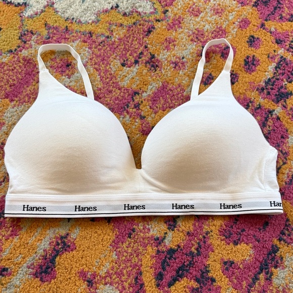 Soft and supportive bra with a branded band. Ideal for daily comfort. NWOT small pallet dust on top of the left cup (see photo), easily washable. Size Large fits 36 C