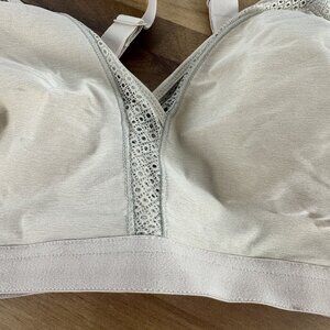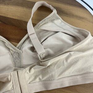 Hanes Womens Wire-Free Comfort Bra 2X Beige Nylon/Spandex Blend With Lace Accent