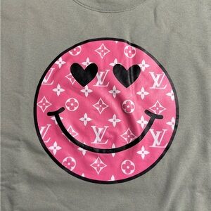 Hanes sage Green Sweatshirt with Pink design Smiley