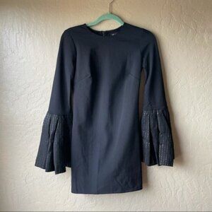 Haney Black Ruflle Bell Sleeved Cocktail Dress