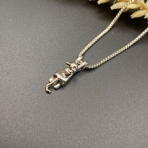 Silver toned chain with a cat hanging on! So cute! Perfect for cat lovers!