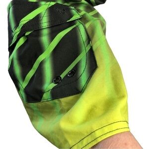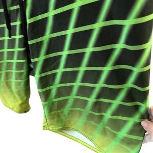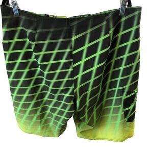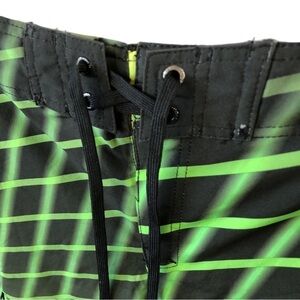 Hang Ten Board Shorts Men 34 Neon Green Black Grid Pattern Front Lace Closure
