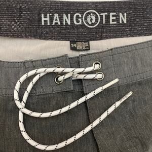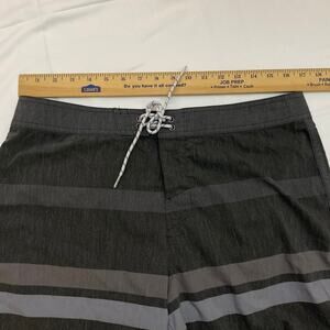 Hang Ten Board Shorts Swim Trunks Surf Gray Striped Size 34 Embroidered Logo