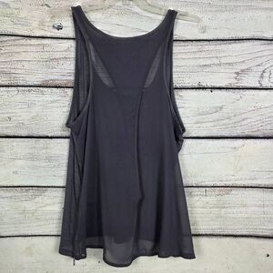 Hang Ten women’s racerback tank top in gray with colorful pink, blue, and yellow paint-splash graphic on front. Made of lightweight semi-sheer fabric with flowy fit and high-low hem. Great for layering over bralettes or swimsuits.