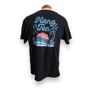 Hang Ten Mens Tee Sz Large Black Sunset Wave Palm Tree Short Sleeves