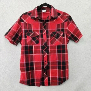Hang Ten Short Sleeve Western Button Down Men's Small Red Black Plaid