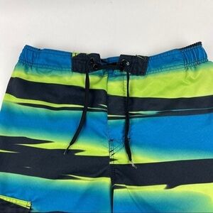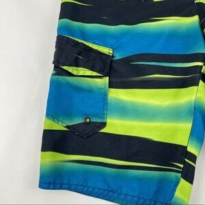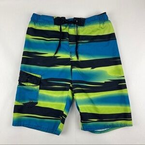 Hang Ten Swim Trunks Boys Large Blue Black Green Striped