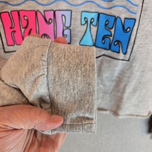 Hang Ten Teens Pull Over Cropped Long Sleeve T-Shirt Sz 14 Gray-Colorful Graphic