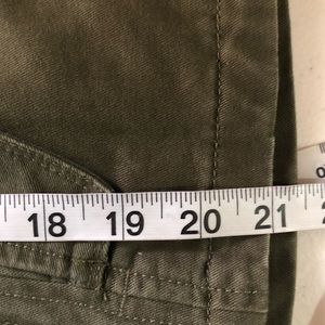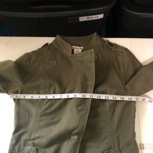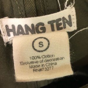Olive military cotton button down lightweight aomen’s jacket by Hang Ten. Preowned in good condition. Jacket features long sleeves, button down front, double front pockets, and decorative logo plaque. Size S 100% Cotton