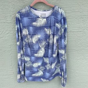 Hang Ten Women's XL Blue Palm Stripe Sun Protection Long Sleeve Surf Top