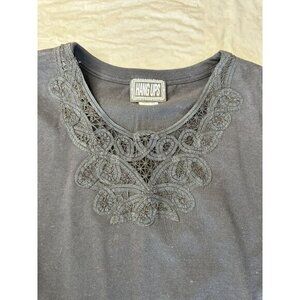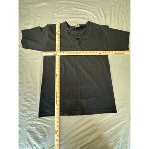 Hang Ups Womens Black Blouse Medium short sleeve pullover 100% cotton round neck
