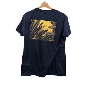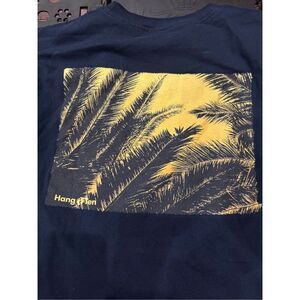 Navy with gold graphics. Front chest says hang ten, back graphic is palm leaves. Size Small great condition.