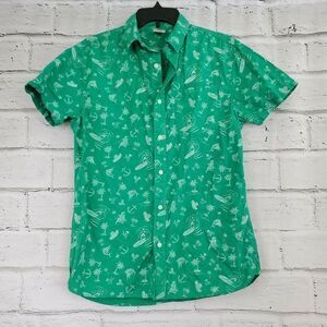 Hang Ten Surf Hawaiian Short Sleeve Shirt Button Up Tiki Men Size Small green .