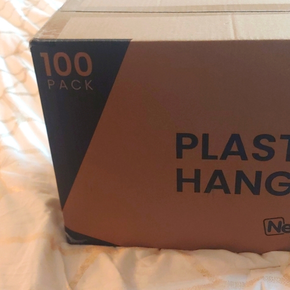 100 plastic hangers. antislip. brand new. box not opened.