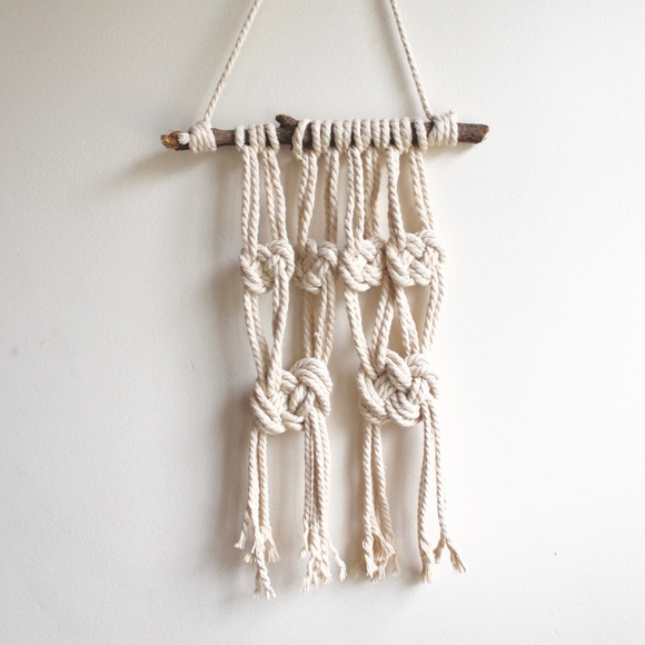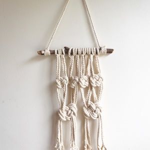 NWT Handcrafted Organic Cotton Macrame Wall Hanging. 9” across, 22” long from very top to very bottom cord. Made with love!