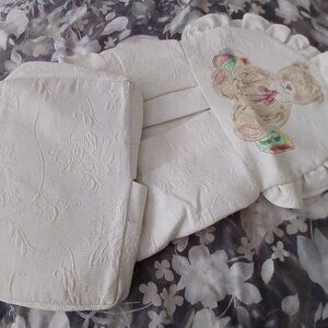 Hanging Baby Diaper Caddy - stacker/ tent - like new condition 25" x 12" x 9" D - great for diapers, folded onesies, pj's, sweaters etc - can be hung in closet or near crib - lovely textures cream on cream design with paint stroke teddy bear art