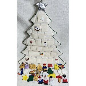 Hanging Christmas Advent Calendar Handmade Christmas Tree With 25 Pieces 29x19”