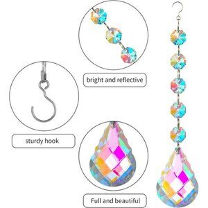 🧿Package Include: You will get 9 pcs colorful crystal sun catcher prism ball with chain and hook, each one have 5 beads connected. These charming shiny ornaments will brighten up your place and create pretty rainbows under the natural light