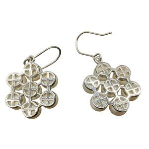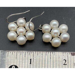Hanging Earrings Faux Pearls Flower Cluster on Hypoallergenic Stainless Steel .75"W