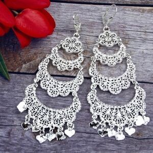 Hanging Earrings in Silver Metal and Pendant Heart Savoyard Style Oriental Wedding