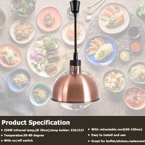 Hanging Food Heat Lamp Overhead Food Warmer Copper Finish Retractable (Dia 29cm)