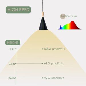 Energy efficient, High PPFD: The solid led grow light bulb for indoor plants producing a remarkable PPFD 168.3 mol/ *s at 12in, while only consuming 20Watts of energy at 120V input.