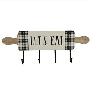 Wall Hook Rack Farmhouse Rolling Pin Buffalo Check Black White