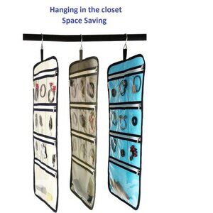 🧿Closet hanging jewelry organizer with high quality zippers run across each row of pockets, differ from messy jewelry boxes, keeps jewelry secure and free of dust.
