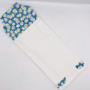 Hanging Kitchen Tea Towel, Button Closure, Cabinet Oven Towel Blue Daisy