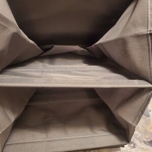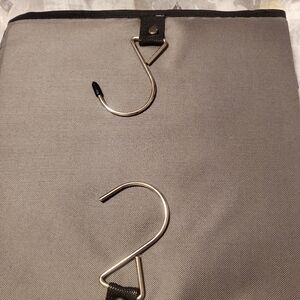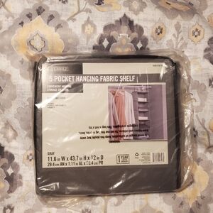 Heavy duty hanging organizer in the color gray. Great for closet organization or classroom / office supplies.