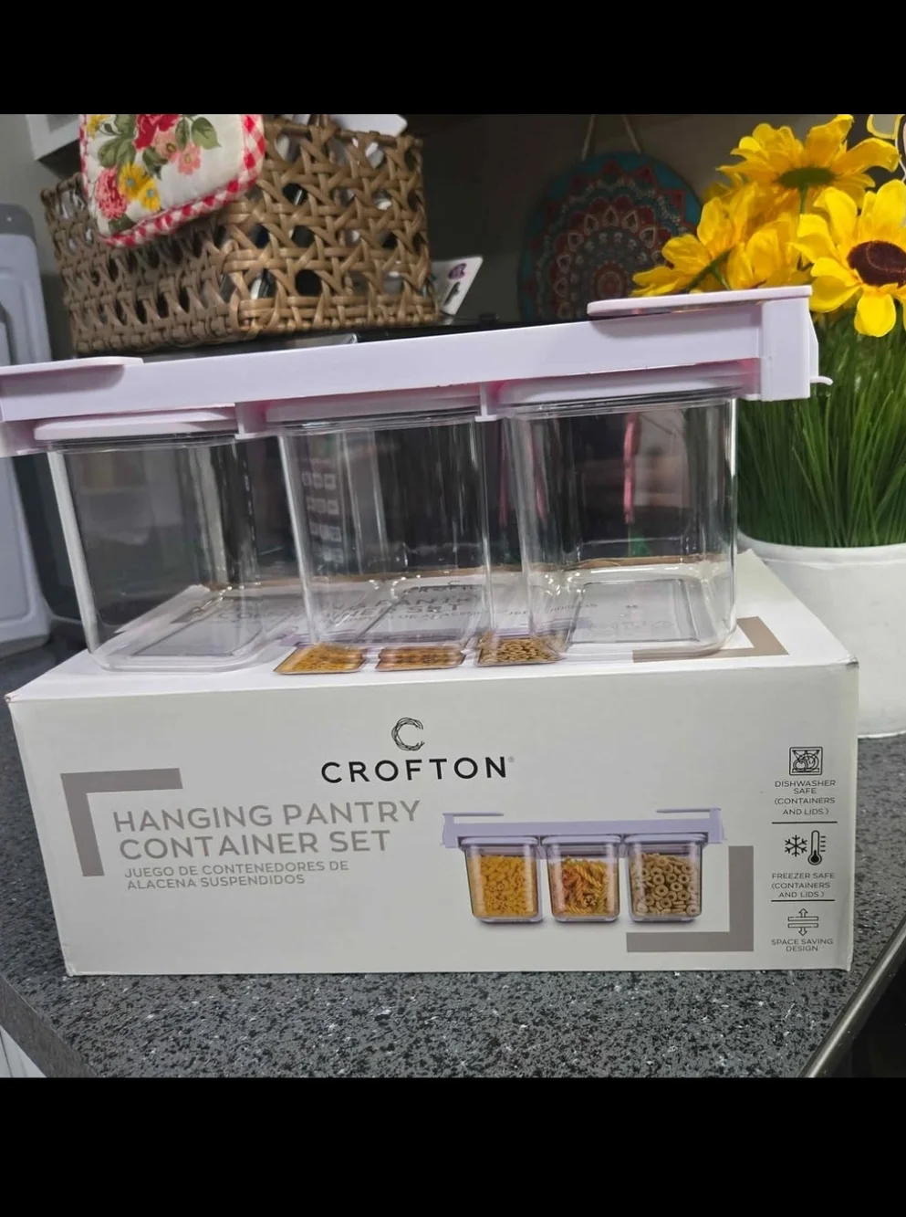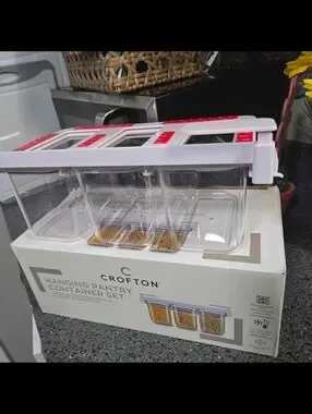 New, never used. I took it out of the box and determined it will not work for my kitchen space. It is great for storing cereals, pasta, crackers, etc.