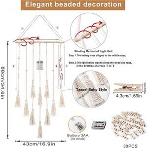 🧿HAND WOVEN ART: Meticulously handcrafted, sturdy, and resistant. They are made of natural, high-quality cotton rope and a wooden dowel. Approx 17" Width x 32" Length (from top to the ends of the longest fringe). One row can use three 4 x 6 photos or four 2x4 photos as your family photo frames.