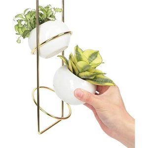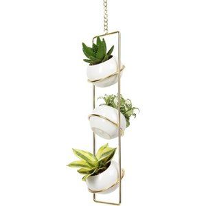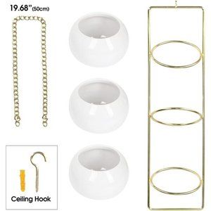 🧿[Elegant and Unique Design] This 3 Tier Ceramic plant pot wall mounted holder look super unique, chic, and elegant with its porcelain white color and golden metal chain frame that supports the plant pots. You can display your favorite plants types such as cactus, herbs, succulents and other small plants and add some greneery in your home.