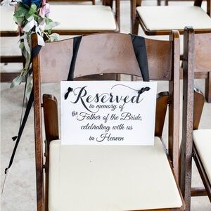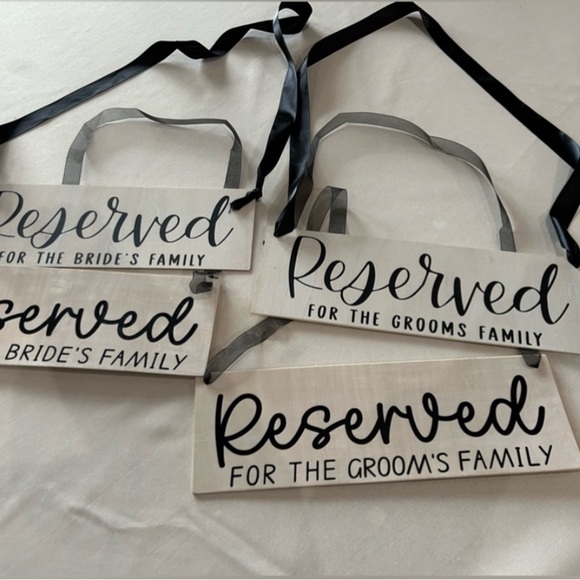 Wedding signs! 2 each for bride’s family and groom’s family. Father in heaven sign