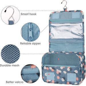 Hanging Travel Toiletry Bag Cosmetic Make up Organizer for Women Waterproof Blue