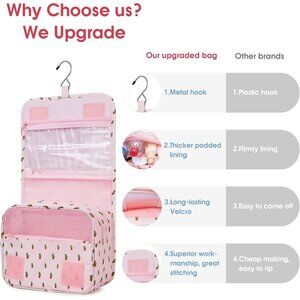 Hanging Travel Toiletry Bag Cosmetic Make up Organizer for Women Waterproof Pink