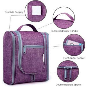 🧿✅ DETAILS ORIENTED - Buit-in large metal hook allows hanging the toiletry case from towel rack, coat hook or whereever is available, making your toiletries and cosmetics displayed well for easy access, saving bathroom counter space as well. Water-resistent and durable fabric protects your gear from spills. Soft fabric and reliable zippers. Wide opening and rectangle shape makes it easy to stand on its own.