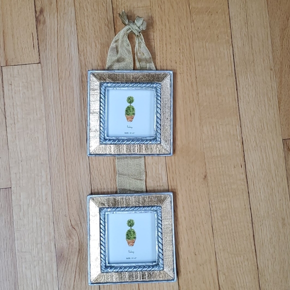 Cute little addition to any room. A double frame that is connected by a beautiful gold ribbon.