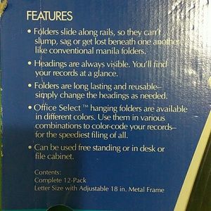 Office select hanging file system folders slide along rails so they can't slumps tag or get lost beneath one another like conventional manila folders. Headings are always visible you'll find your records at a glance. Folders are long lasting and reusable simply change the headings as needed.