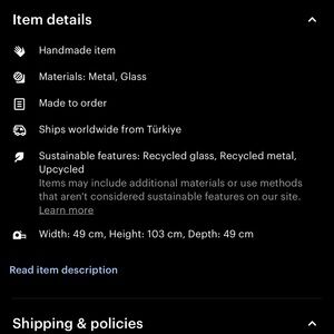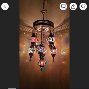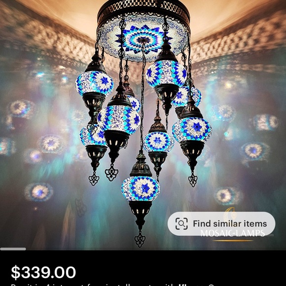 Hanging light . Never opened as I did not have high enough ceilings for it . Dimensions in photos . Color is the first picture, blue. Second photo is showing how it’s hung .