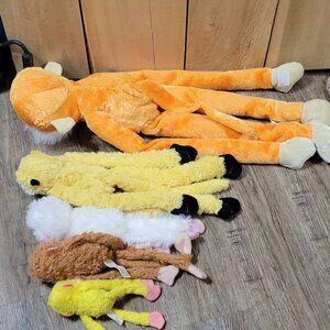 Total of 5 hanging monkeys. The bigger yellow monkey makes a monkey sound when belly pressed. Sizes range from 26 inches to 7 inches.
