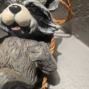 Hanging.Resin Raccoon Sitting in Swing Roman Raccoon Pudgy Pals