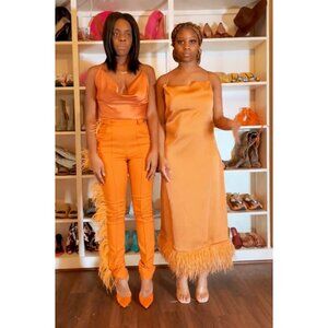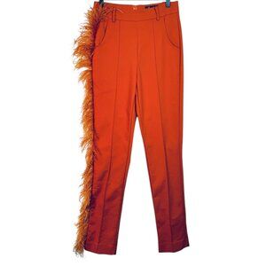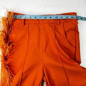 Hanifa Ava Ostrich Feather Pants Fitted Statement Blogger Fave Orange Small