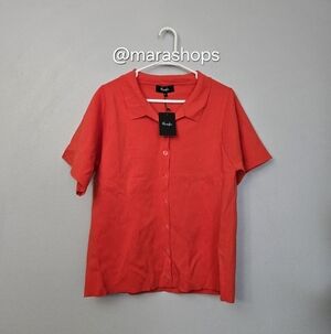 TAG: hanifa polo button down knit shirt cardigan red orange flame black owned