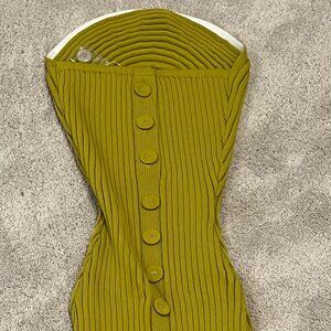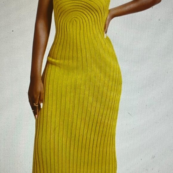 NWT Size L Color Mustard. Purchased direct from Hanifa. This tube dress is gorgeous. Tall girl friendly (short girl friendly with very tall heels). Perfectly encapsulating the wondrous elements of Fall, this stunning gown is rich, warm and sexy in this compelling silhouette. First top buttons in the back are functional. Ribbed knit detail. Length is 56"