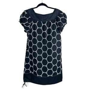 The Hanii Y. 44 shift dress in black with a square neck and embroidered accents is a stylish and versatile option for various occasions such as parties, casual outings, or business events. Made from a luxurious blend of cotton and silk, this dress features a geometric pattern and a gathered hem, adding a touch of sophistication to its short length silhouette. The shift style and size 8 fit make it a flattering choice for women looking for a unique and eye-catching dress.